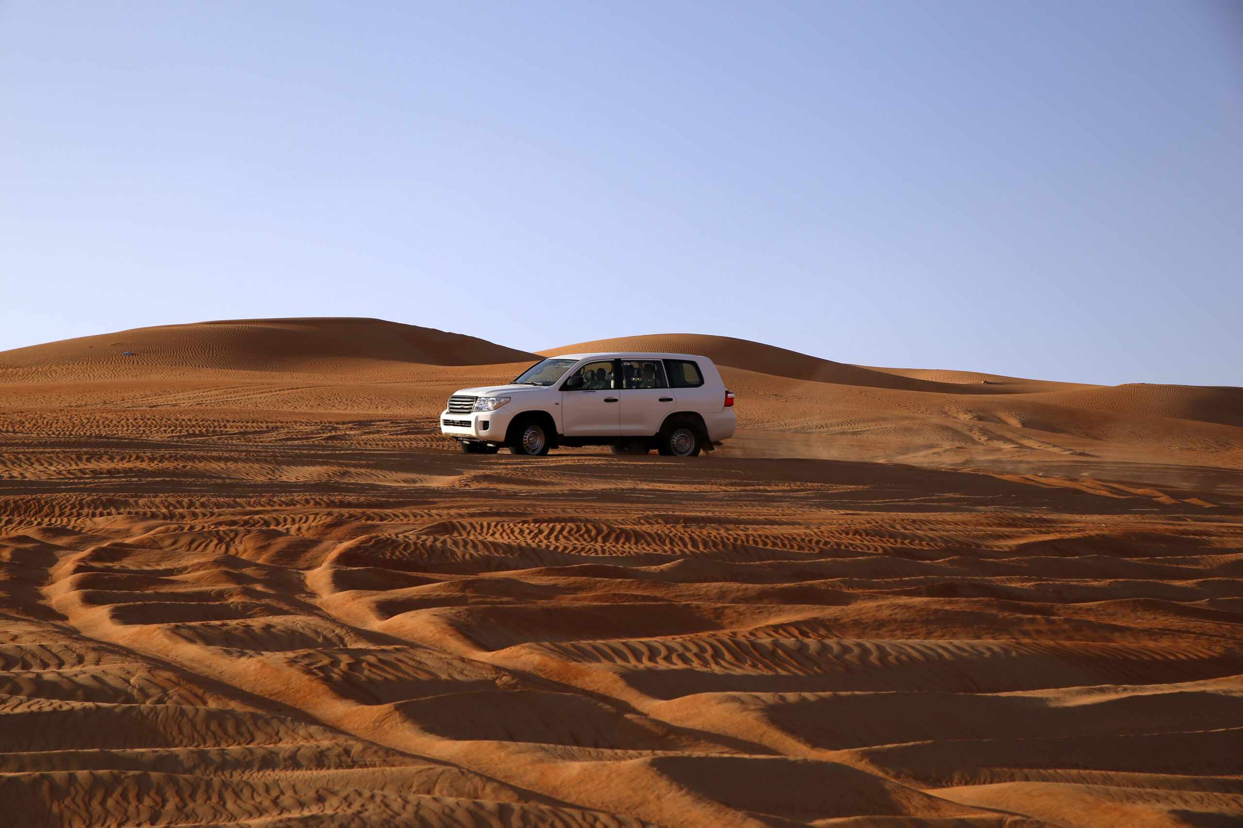 Voordat u de woestijn inrijdt, is het belangrijk om de bandenspanning van uw 4WD te verlagen bij een bandenshop in Al Wasil of Bidiyah. Zorg er ook voor dat u genoeg brandstof en water bij u hebt. Vanaf het Al Maha-benzinestation wordt u begeleid naar uw privé glampingcamp in de woestijn. Eenmaal daar kunt u genieten van een ritje door de duinen, gevolgd door een spectaculaire zonsondergang vanaf de top van een zandduin. U overnacht in uw luxe privé glampingtent.
